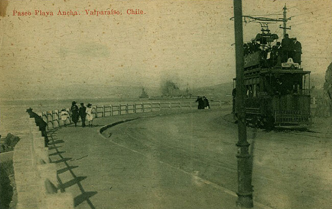 Fotografía de Mattensohn & Grimm año 1922, consignada como «Paseo Playa Ancha, Valparaíso, Chile». Una vista de Avenida Altamirano en dirección al Molo (construido 1912-1930).