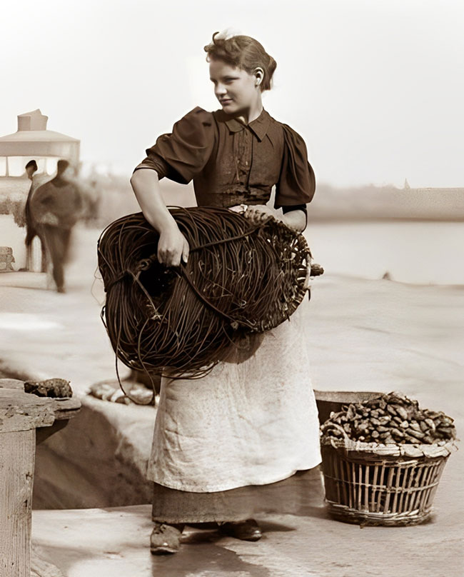 Crédito: (*) «Fisher girl, circa 1890, por Francis Meadow Sutcliffe. Fuente: Sutcliffe Gallery.» -Wikimedia Commons