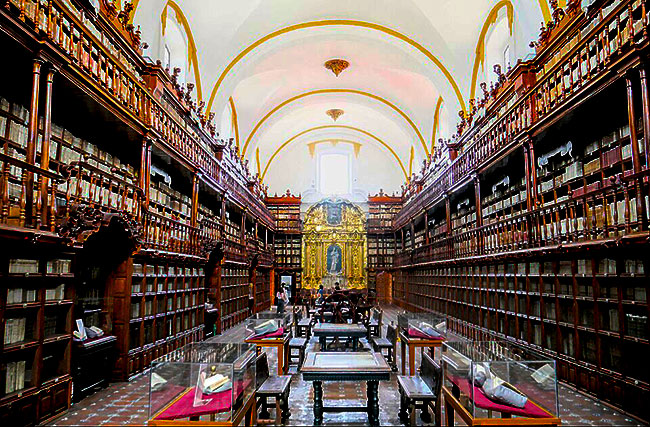 Crédito: (*) Biblioteca Palafoxiana, panorámica, tomada por Luis Alvaz, licenciada bajo Creative Commons Atribución-CompartirIgual 4.0 Internacional. – (**) Foto de Luis García (Zaqarbal), tomada el 25 de mayo de 2017, publicada bajo las licencias GNU y Creative Commons Atribución-CompartirIgual 4.0 Internacional. Azulejo de Alfredo Ruiz de Luna González. – (***) Foto de Amanda-CaiXiaoman, tomada el 15 de agosto de 2018, publicada bajo la licencia Creative Commons Atribución-CompartirIgual 4.0 Internacional.