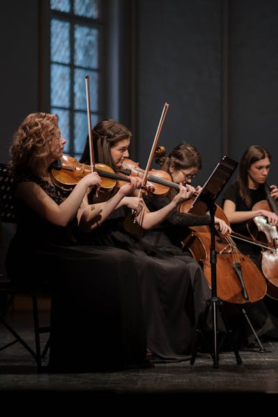Crédito: (*) Foto de Rene Terp: https://www.pexels.com/es-es/foto/interior-de-un-restaurante-clasico-2504911/ – (**) Foto de cottonbro studio: https://www.pexels.com/es-es/foto/mujeres-tocando-el-violin-juntas-7095037/ (***) «Remise de décorations à l’Ecole Saint-Cyr – photographie de presse» por Agence Meurisse, 1919, en dominio público. – (****) «Portret van Joost Wijker voor de rubriek: Andere Kant van de Medaille» por Phil Nijhuis, 11 diciembre 2018, bajo licencia Creative Commons CC0.